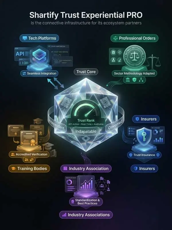 Shartify Trust Experiential PRO doesn't just assign a ranking: it activates your reputation as a dynamic engine for experiential engagement, qualified lead generation, and compliant business transactions, measurable, communicable, and fully aligned with professional ethics and privacy standards.